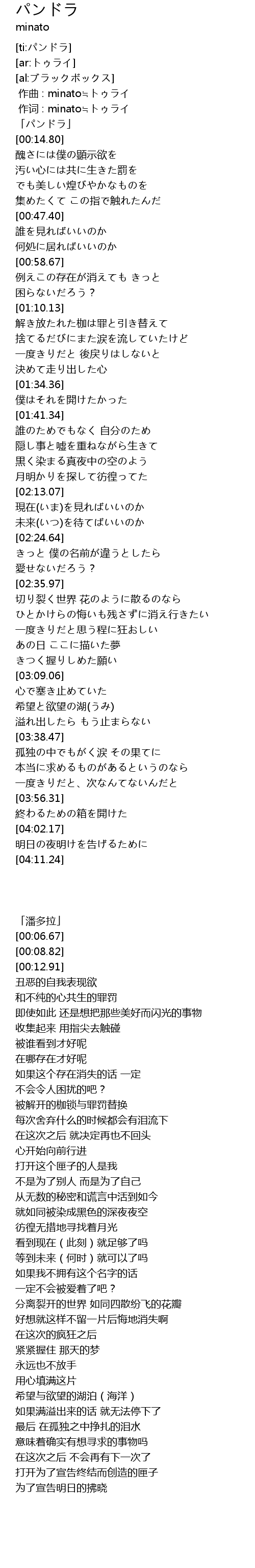 | [03:56.73] | 打开为了宣告终结而创造的匣子 |
