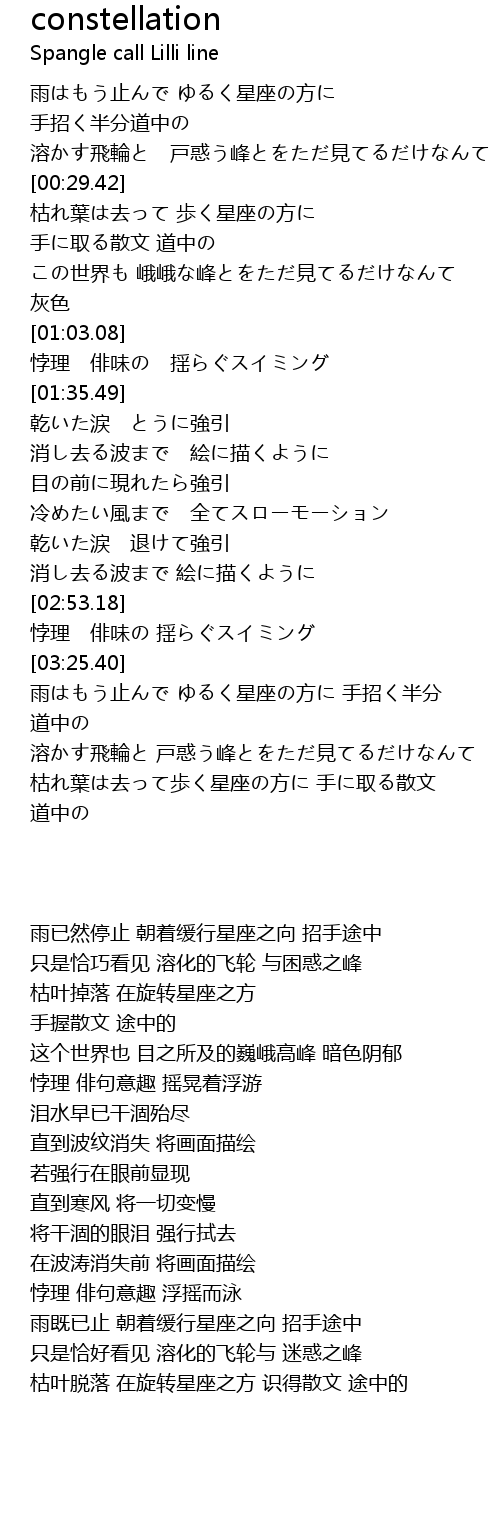 | [00:32.68] | 枯叶掉落 在旋转星座之方 |
