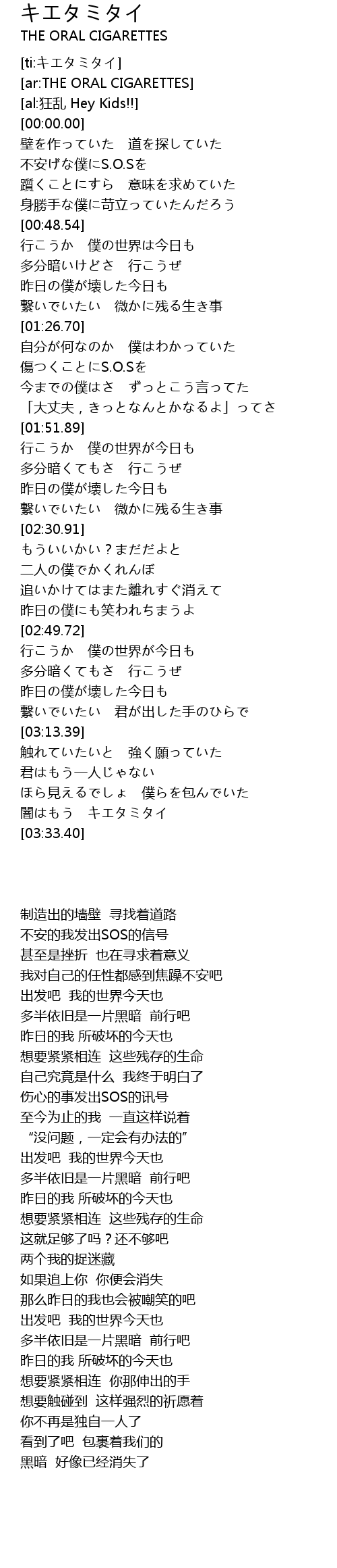 | [00:35.53] | 不安げな僕にS.O.Sを |