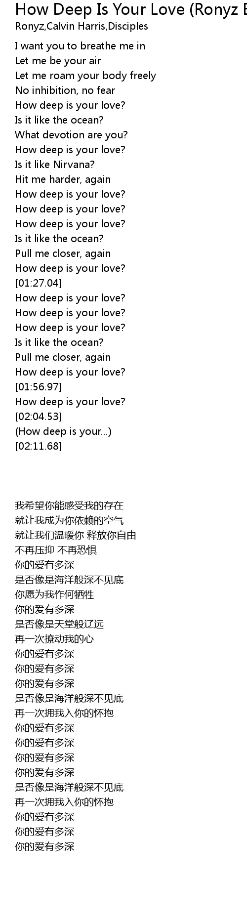 | [01:55.02] | How deep is your love? |