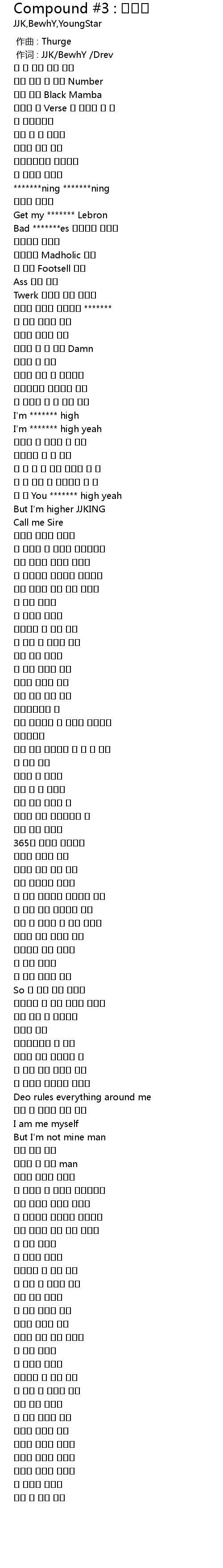 | [00:01.00] | 作词 : JJK/BewhY /Drev |