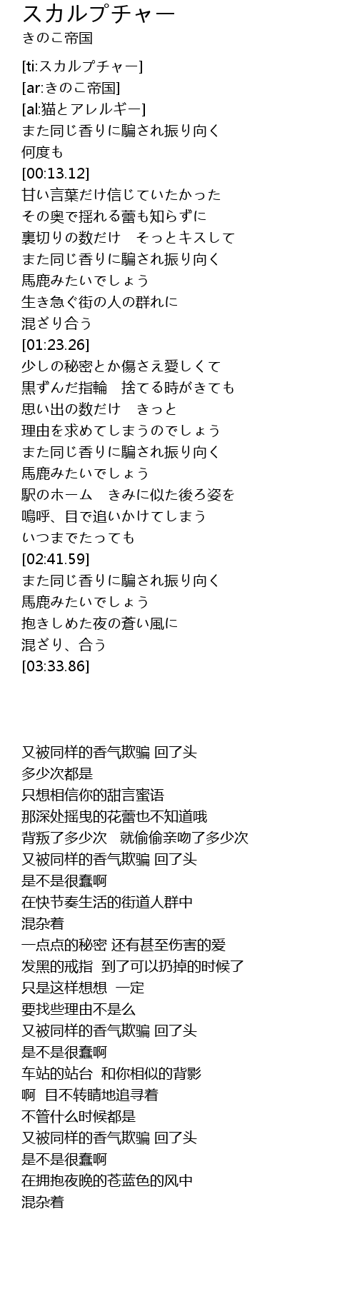 | [02:03.16] | また同じ香りに騙され振り向く |