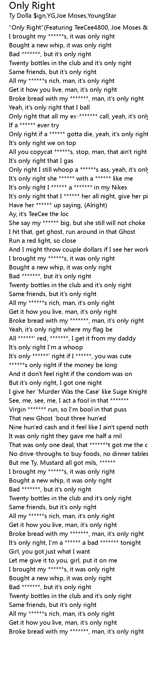 | [00:00.00] | "Only Right"(Featuring TeeCee4800, Joe Moses & YG) |