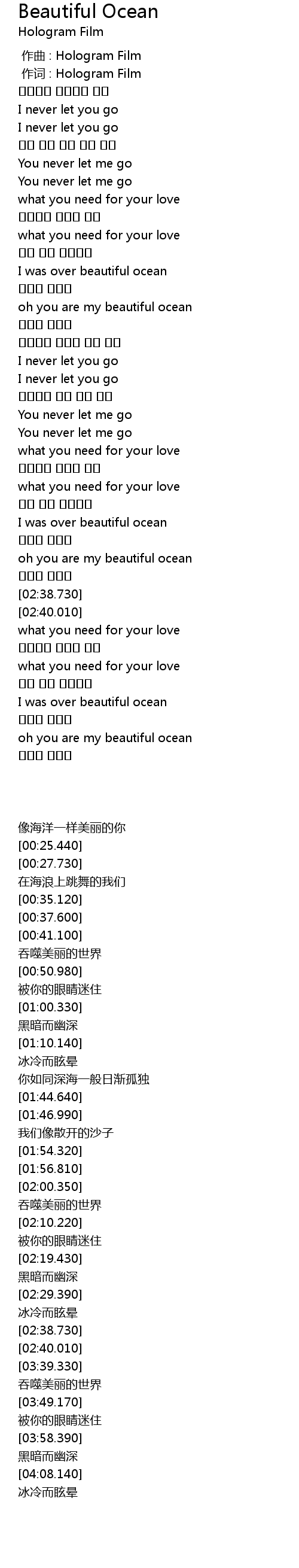| [02:29.390] | oh you are my beautiful ocean |