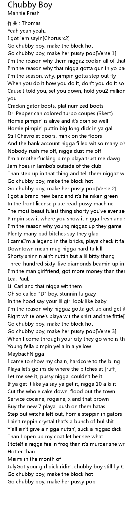 | Go chubby boy, make her pussy pop Verse 1 | |