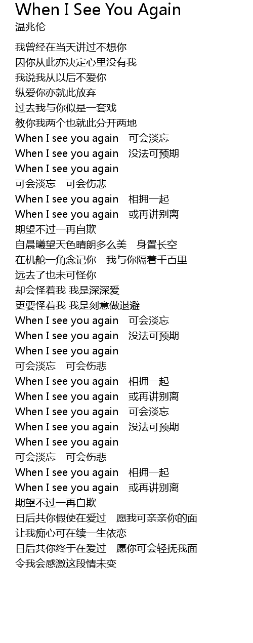 | [03:11.73] | When I see you again 或再讲别离 |
