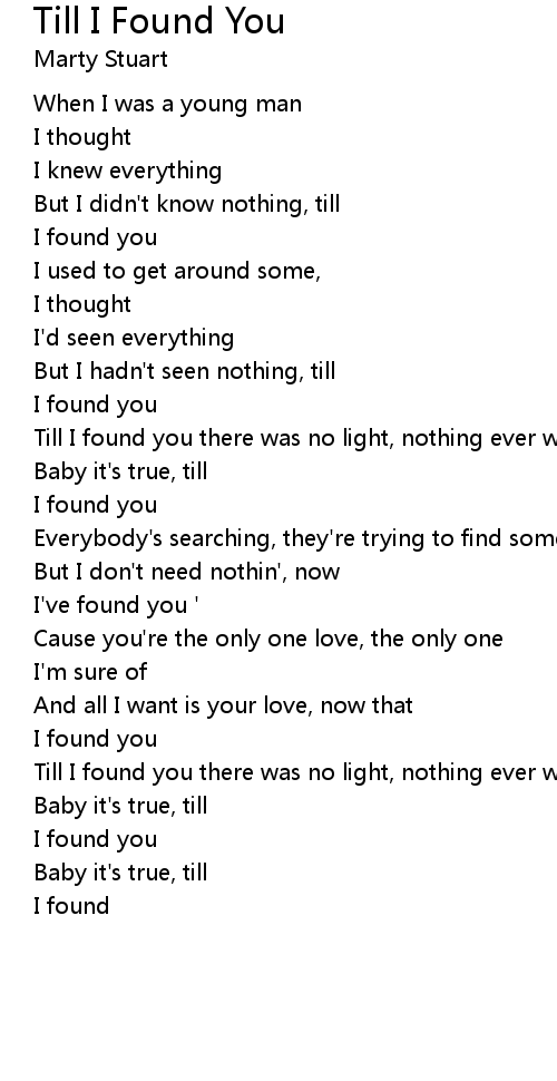 Till I found you there was no light, nothing ever worked out right |