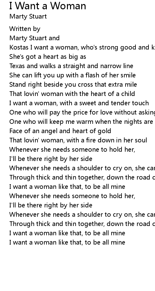 I want a woman, with a sweet and tender touch |