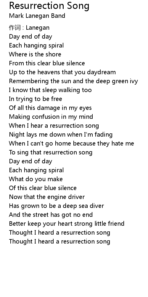 | Thought I heard a resurrection song | |