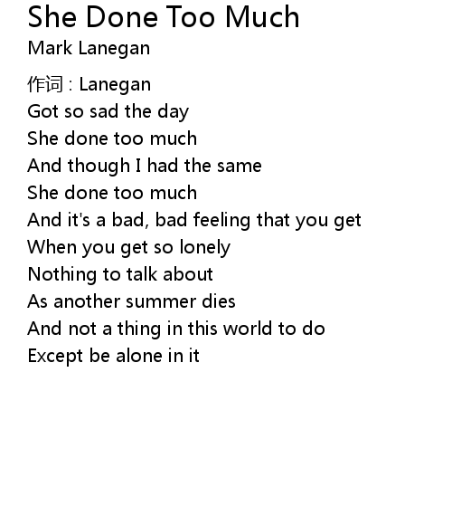| 歌曲 | She Done Too Much |