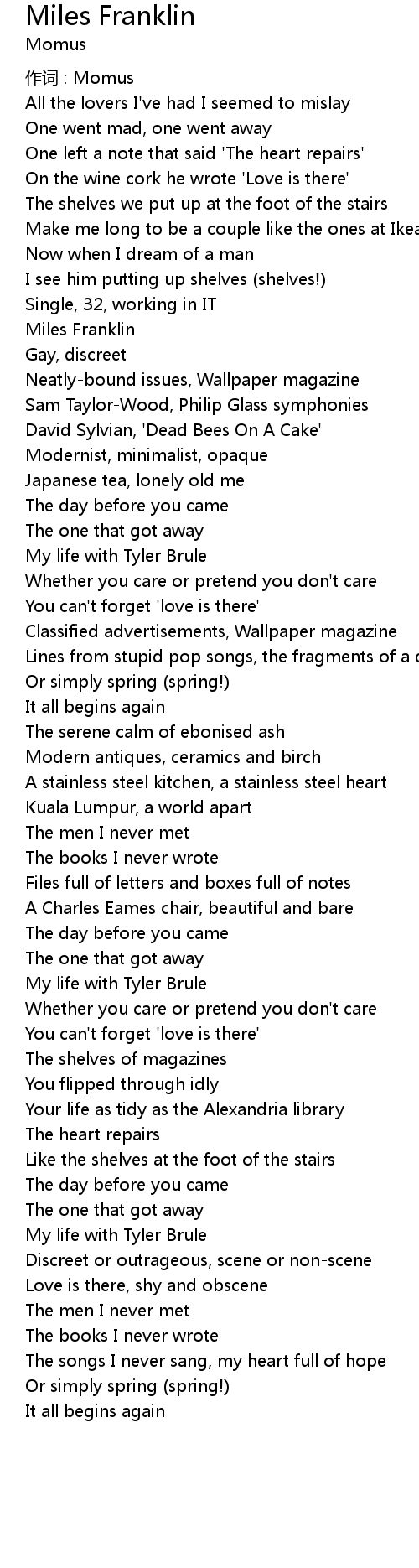 | 歌曲 | Miles Franklin |
