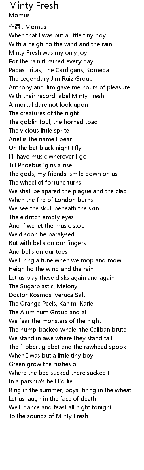 | 歌曲 | Minty Fresh |