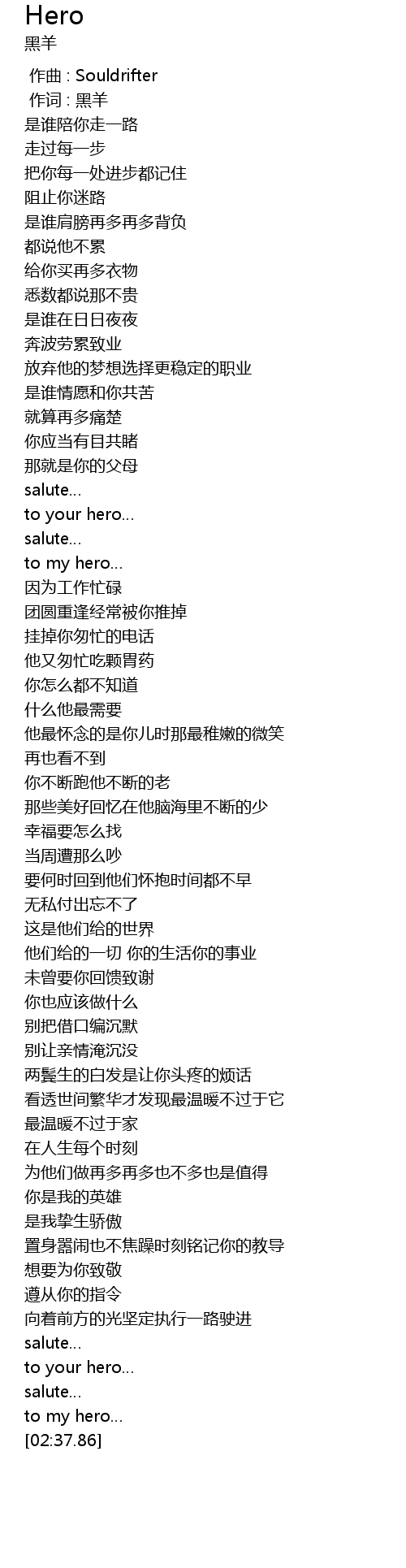 | [01:58.67] | nǐ shì wǒ de yīng xióng |