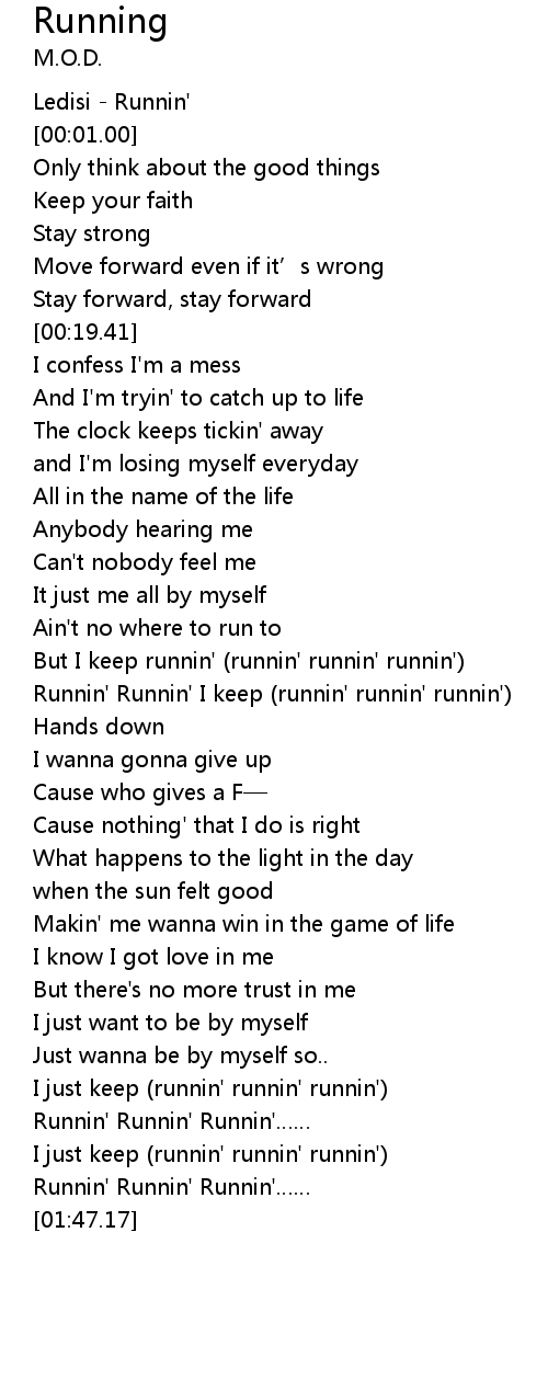 | [00:43.48] | Runnin' Runnin' I keep (runnin' runnin' runnin') |
