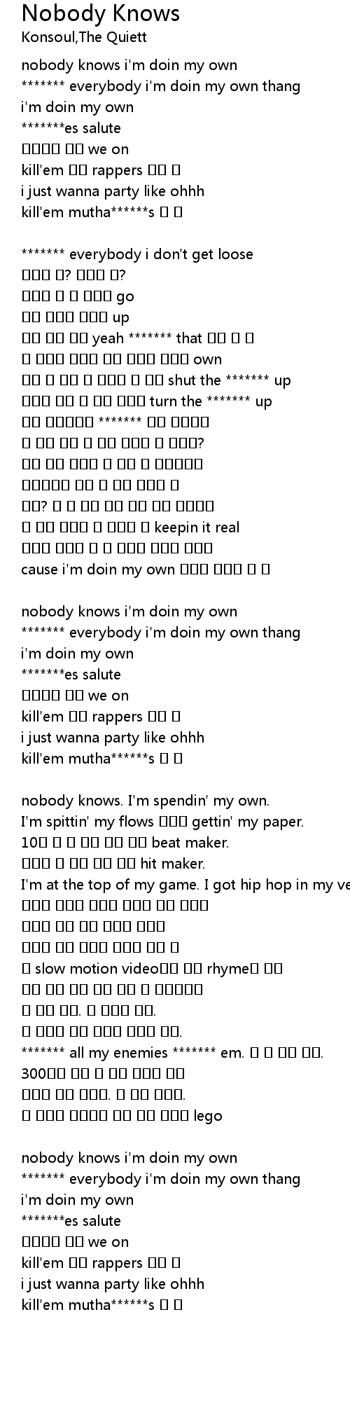 | 이해 안 바래 내 스타일 넌 그냥 shut the ******* up | |