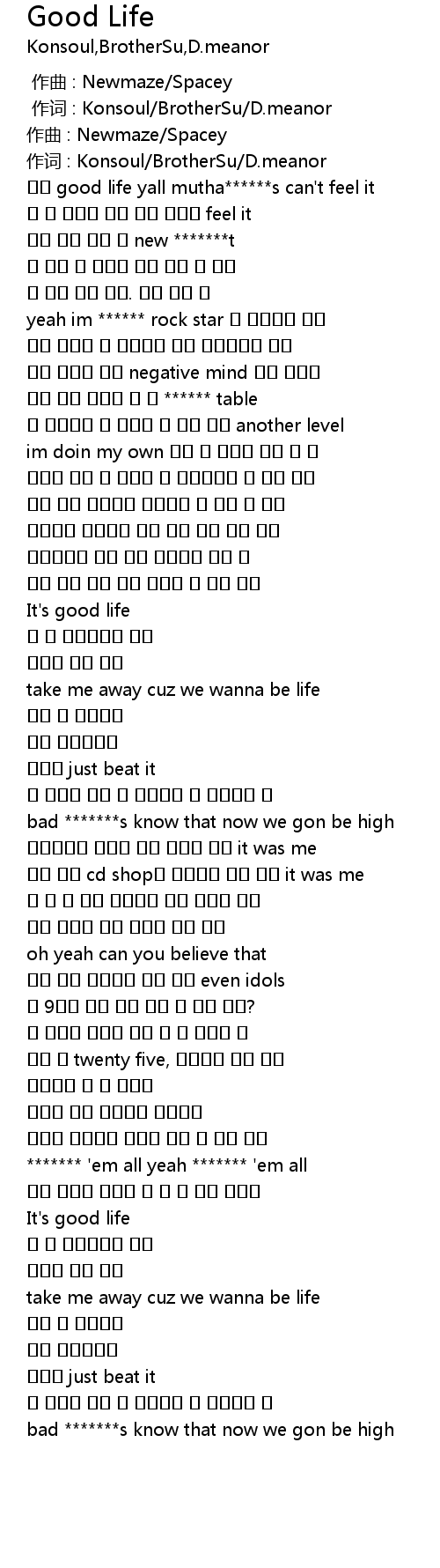 | [00:14.62] | 이건 good life yall mutha******s can't feel it |