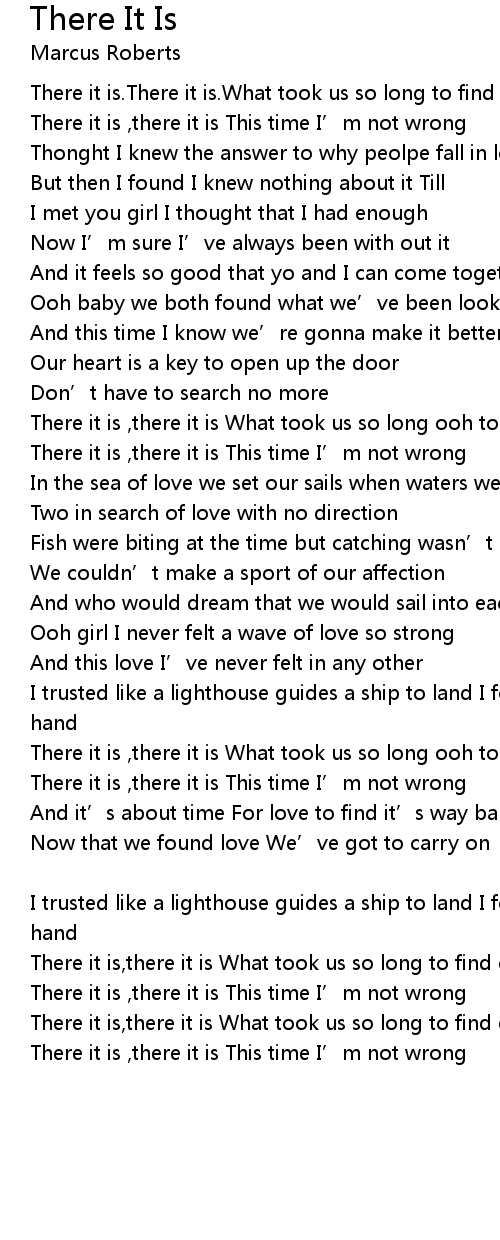 | There it is ,there it is What took us so long ooh to find each other baby | |