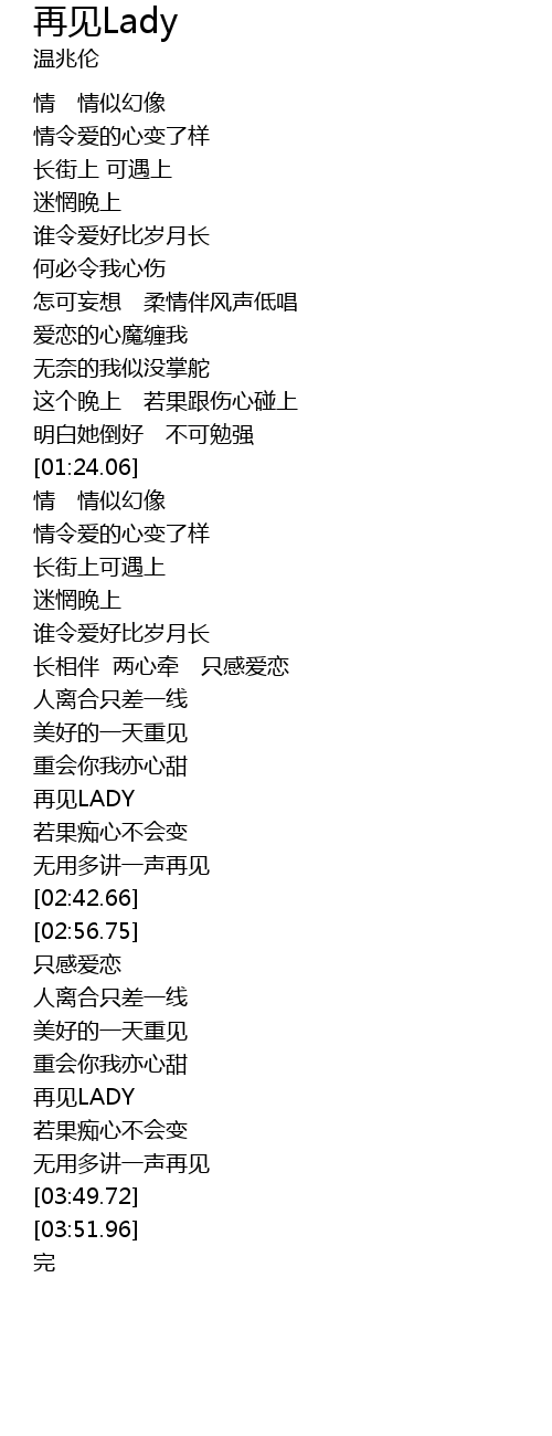 | [02:25.84] | 再见LADY |