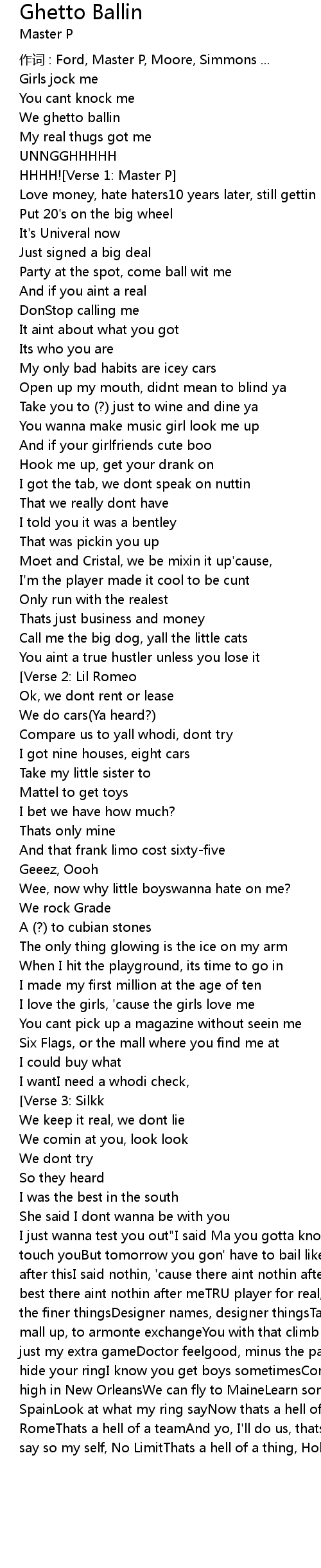 | 作词 : Ford, Master P, Moore, Simmons ... | |
