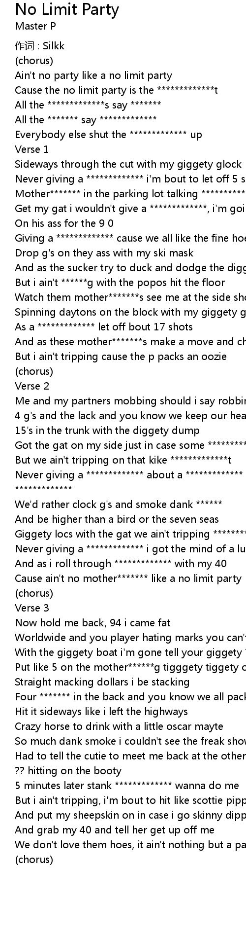 | Cause ain't no mother******* like a no limit party | |