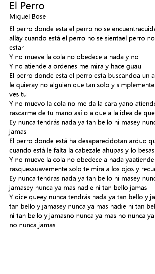 | El perro donde esta el perro esta buscandoa un amo que le entienda a un amo que le quieray no alguien que tan solo y simplementeultima ultimamente el ese en mi ves tu | |