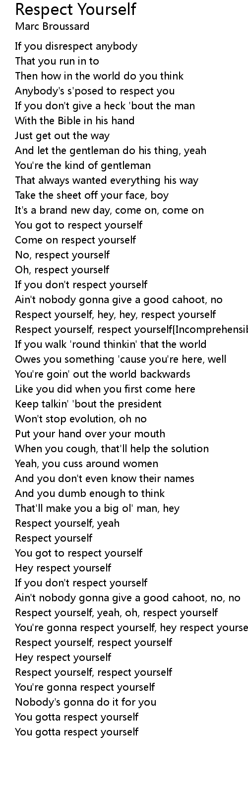 Come on respect yourself |