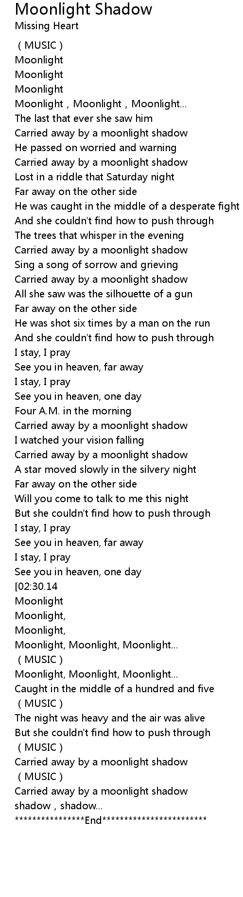 | [01:17.97] | Carried away by a moonlight shadow |