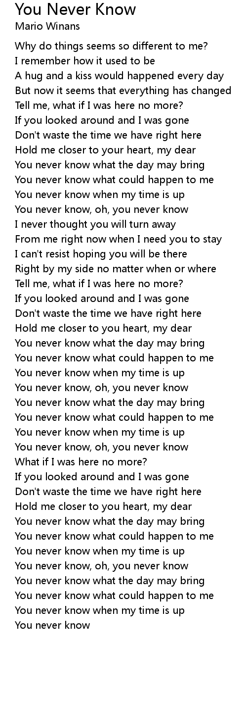 You never know, oh, you never know |