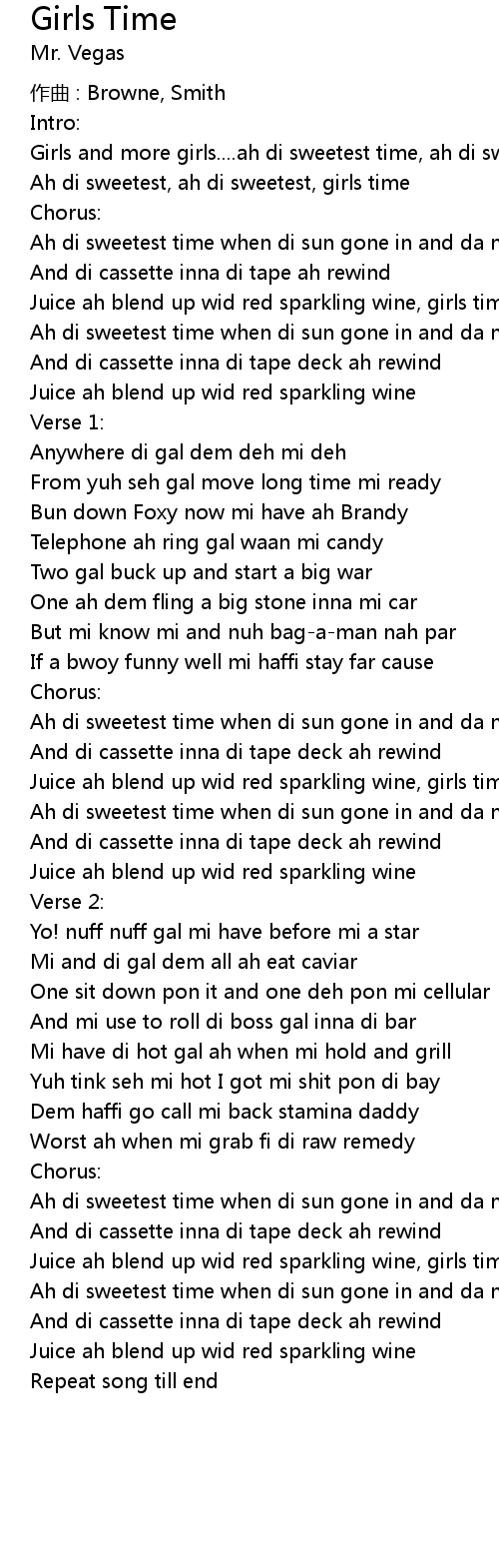 | Ah di sweetest, ah di sweetest, girls time | |
