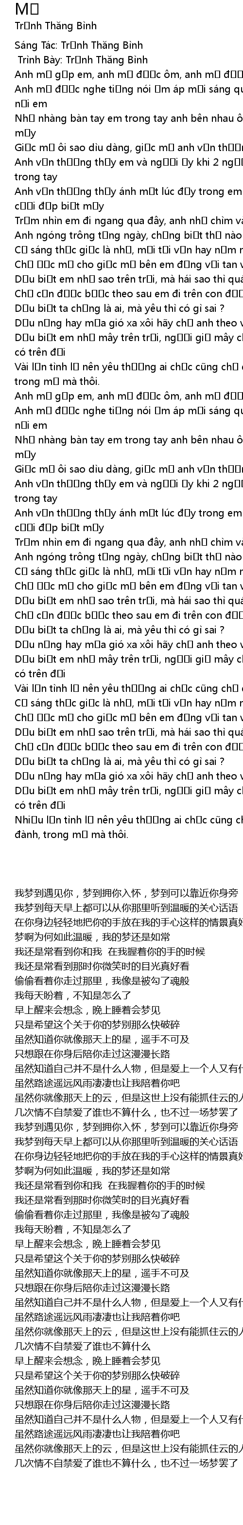 | [02:41.48] | Anh mơ gặp em, anh mơ được ôm, anh mơ được gần bên em |