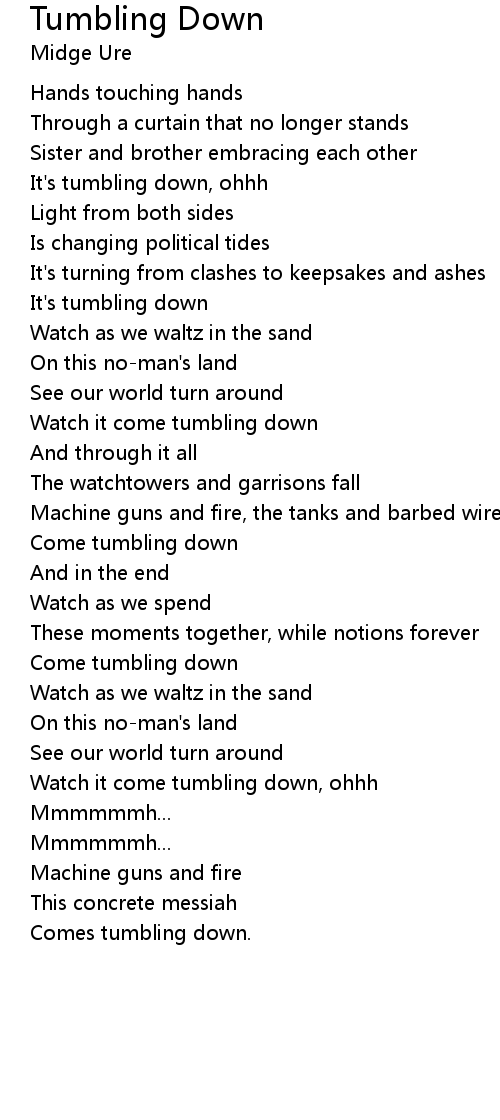 | Comes tumbling down. |