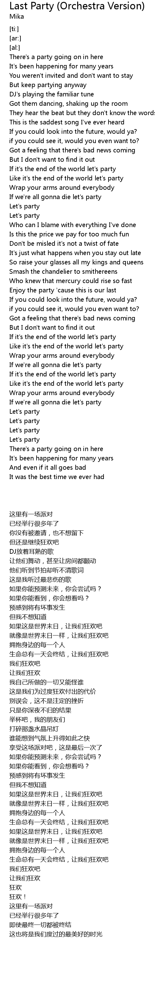 Like it's the end of the world let's party |