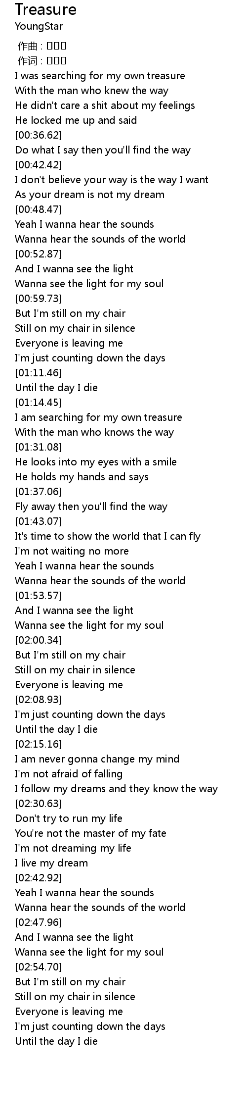| [00:25.15] | I was searching for my own treasure |