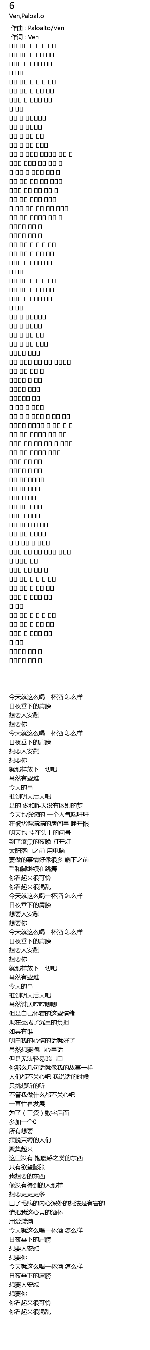 今天就这么喝一杯酒 怎么样 |