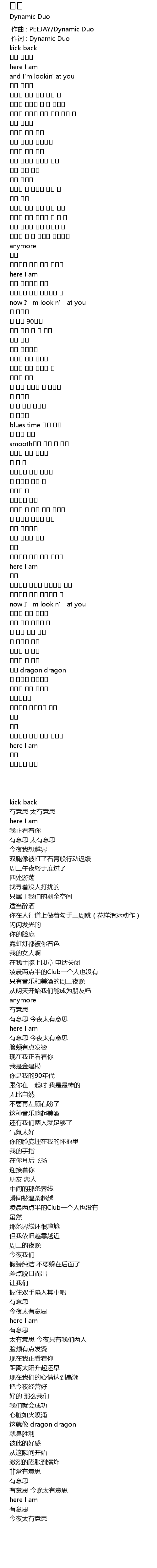 | [00:00.00] | zuo qu : PEEJAY Dynamic Duo |
