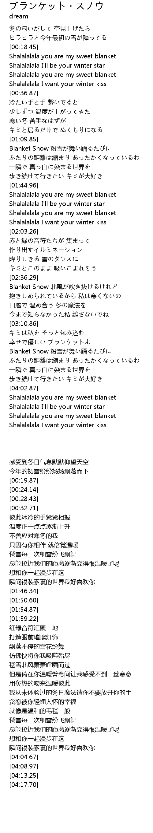 | [04:13.25] | Shalalalala you are my sweet blanket |