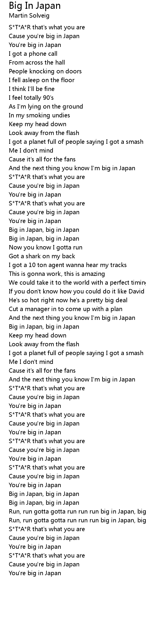Run, run gotta gotta run run run big in Japan, big in Japan |