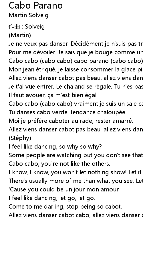 | Allez viens danser cabot cabo, allez viens danser cabo parano. Yeah yeah. |