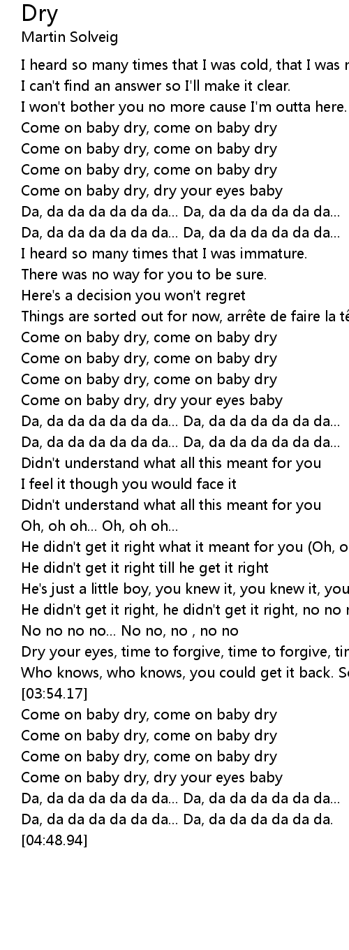 | [04:09.22] | Come on baby dry, come on baby dry |