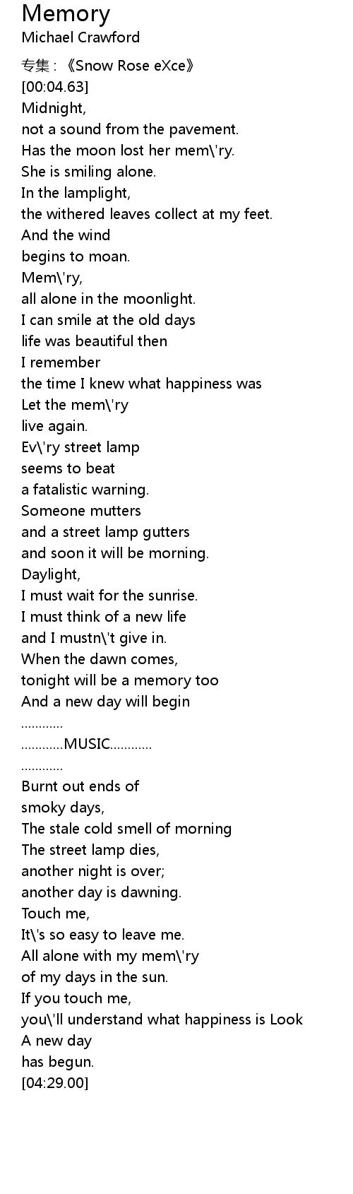 | [00:16.00] | Has the moon lost her mem' ry. |