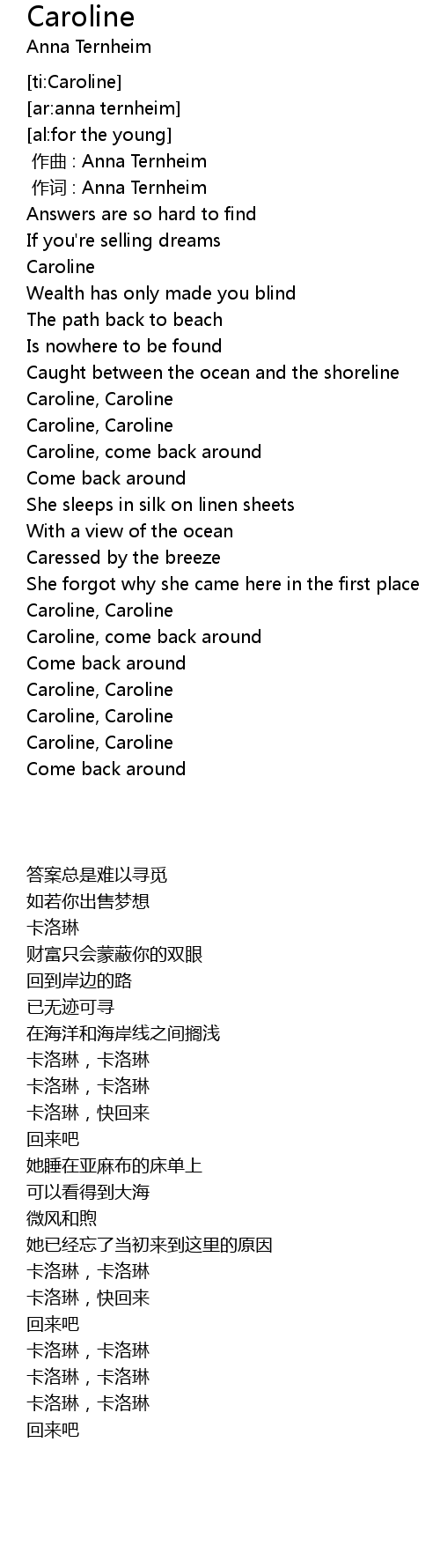 | [00:55.81] | 卡洛琳,卡洛琳 |