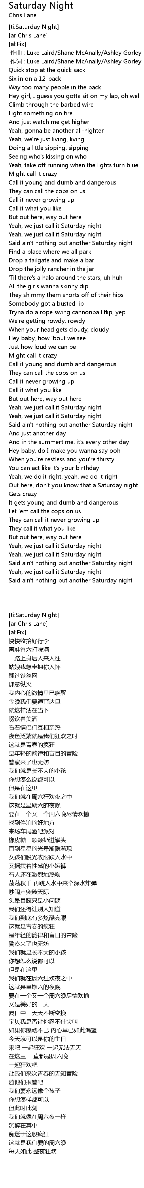 | [ti:Saturday Night] | |
