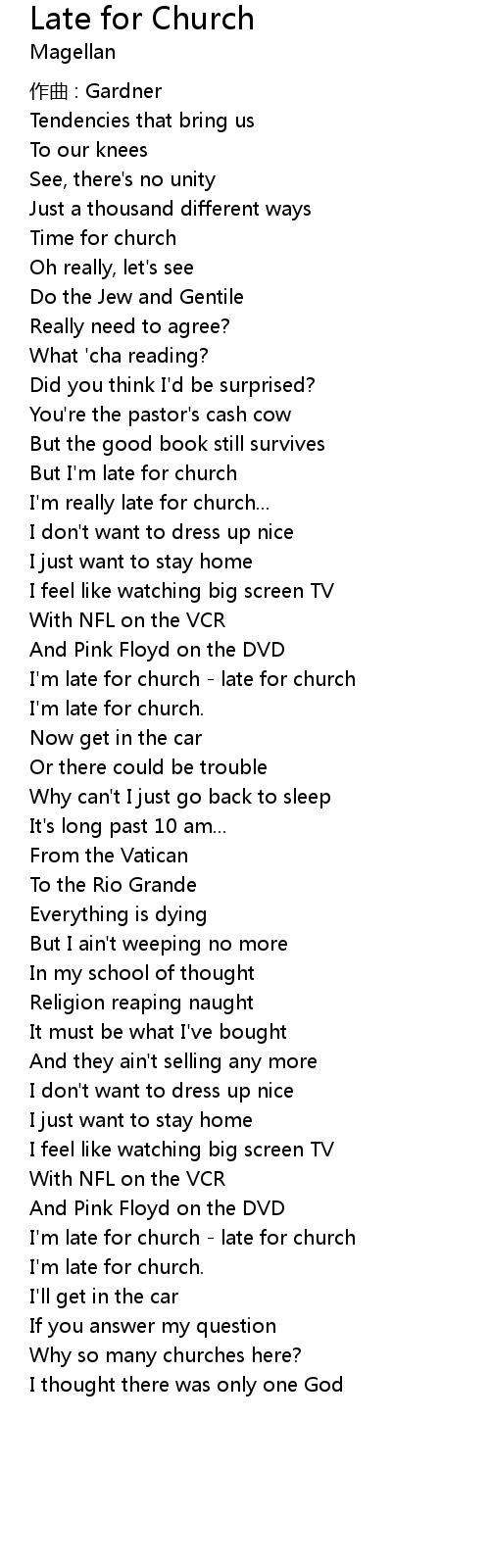 | 歌曲 | Late for Church |
