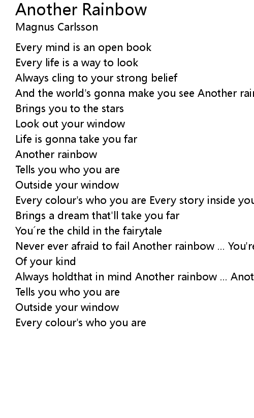 | And the world' s gonna make you see Another rainbow | |