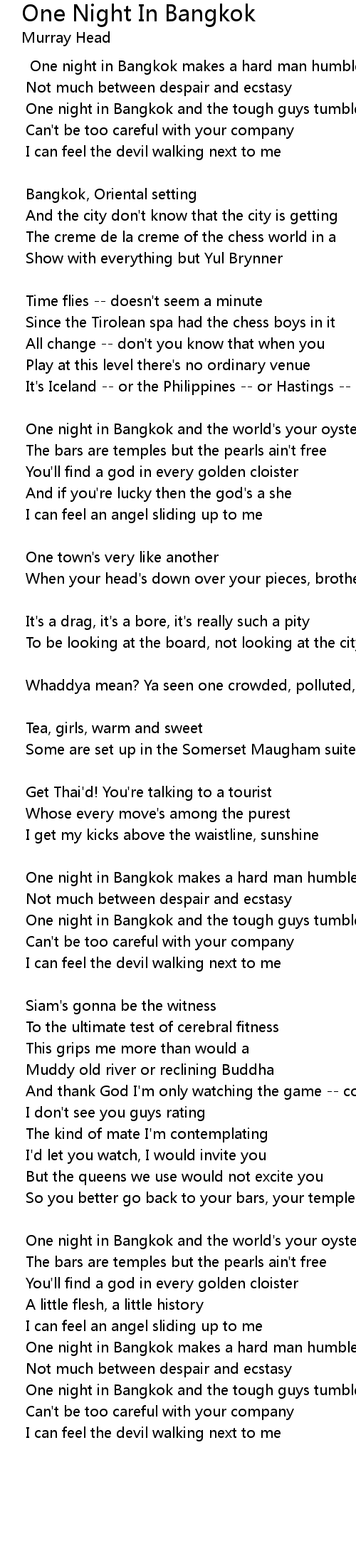 One night in Bangkok makes a hard man humble |