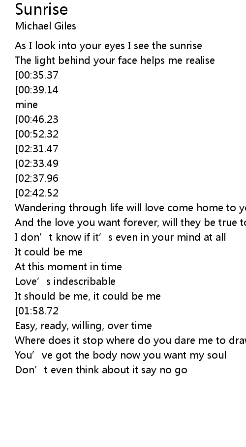| [00:22.06] | As I look into your eyes I see the sunrise |