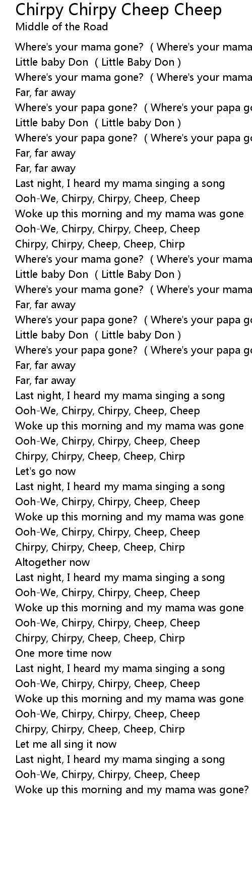 | [01:49.40] | Chirpy, Chirpy, Cheep, Cheep, Chirp |