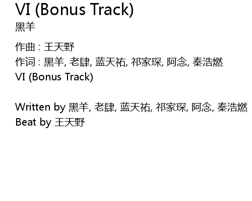 | 作词 : 黑羊, 老肆, 蓝天祐, 祁家琛, 阿念, 秦浩燃 | |