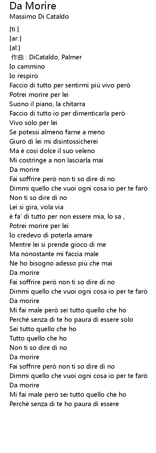 | [03:34.76] | Fai soffrire però non ti so dire di no |