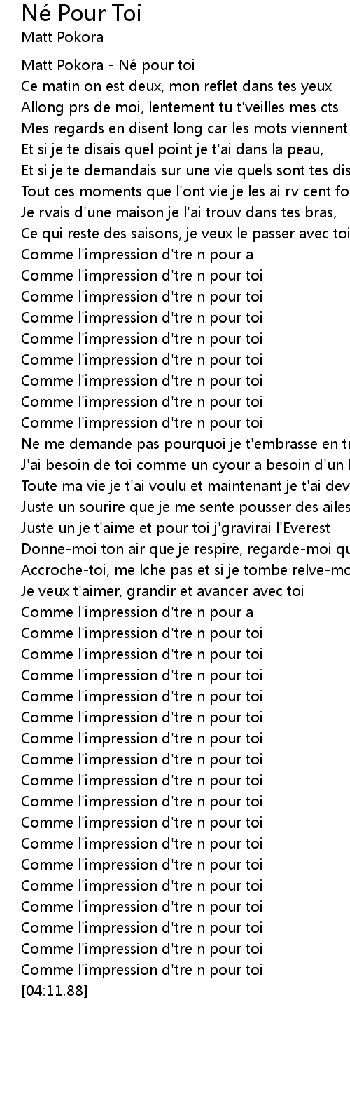| [00:00.04] | Matt Pokora Ne pour toi |
